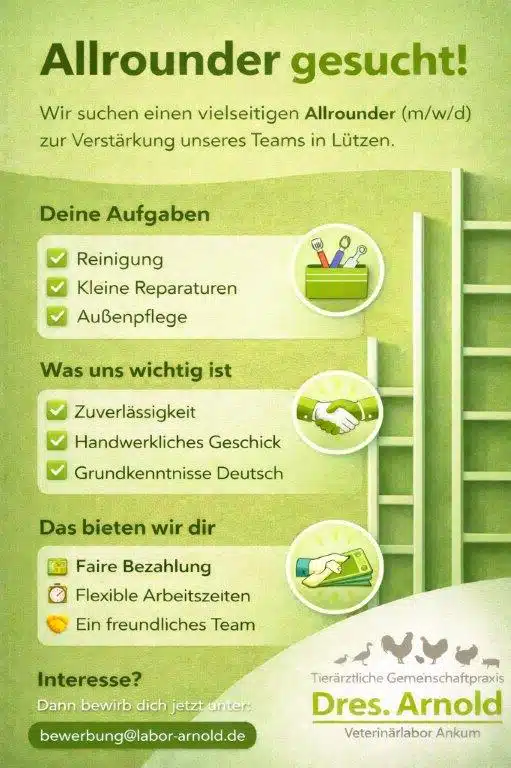 - Chance: Mitarbeit in einer der führenden Geflügelpraxen Deutschlands ohne Nachtdienste